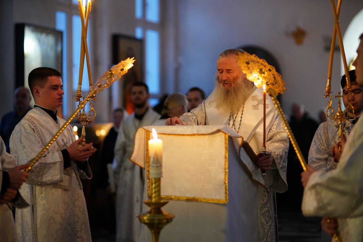За Всенощным бдением Владыке сослужили секретарь Йошкар-Олинского епархиального управления иеромонах Серафим (Пасанаев), настоятель собора иерей Алексий Кирюшкин, клирики собора иереи Леонид Вылекжанин, Андрей Кочаков, диакон Алексий Кузнецов и клирик храма Рождества Пресвятой Богородицы с. Семеновка протодиакон Михаил Козловский. Песнопения исполнял хор собора.