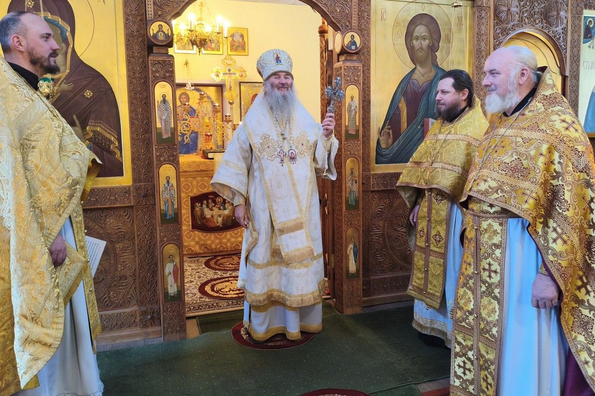 Владыке сослужили секретарь Йошкар-Олинского епархиального управления иеромонах Серафим (Пасанаев), настоятель собора протоиерей Евгений Кутырев, благочинный Йошкар-Олинского церковного округа протоиерей Андрей Норкин, клирики собора иереи Иоанн Кристев, Олег Большаков, Александр Деревяшкин, протодиакон Александр Конокпаев, диакон Александр Староверов и клирик храма Рождества Пресвятой Богородицы с. Семеновка протодиакон Михаил Козловский. Песнопения исполнял хор собора.