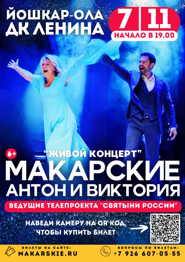 7 ноября 2025 в 19:00 в Йошкар-Оле на сцене ДК им. Ленина г. Йошкар-Олы состоится концерт православных исполнителей, ведущих программы «Святыни России» на телеканале СПАС Антона и Виктории Макарских.