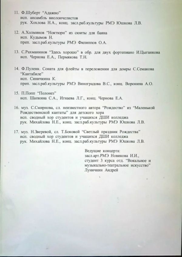 22 января в 18.00 часов в колледже культуры и искусств им. И.С. Палантая г. Йошкар-Олы состоится традиционный Рождественский концерт "Свет Рождественской звезды".