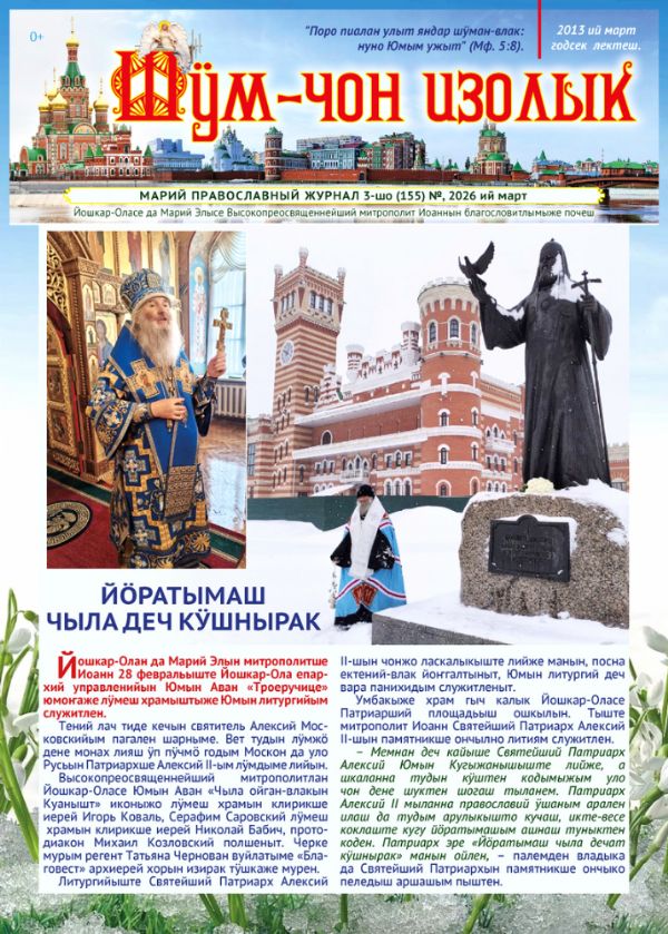 «Шӱм-чон изолык» — иллюстрированный православный журнал на марийском языке. Издание доступно в двух форматах: печатную версию можно приобрести в храмах и церковных лавках Марийской митрополии, а электронную PDF-версию — скачать с официального сайта митрополии по ссылке.