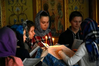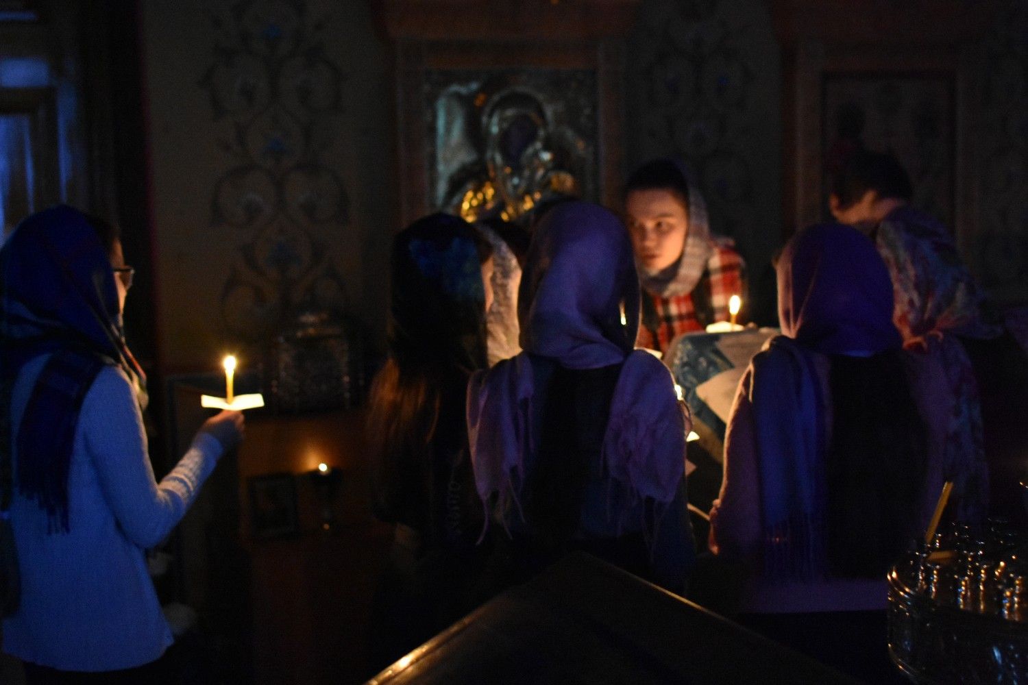 Несколько раз в год митрополит проводит службу, все песнопения и чтения которой исполняют певчие из детско-юношеского хора «Благовест». Для них это является дополнительной возможностью глубже понять и полюбить Православное богослужение и попрактиковаться в чтении, пении и управлении хором. Звучало антифонное пение, исполнялись сложные Великопостные песнопения, которые можно услышать лишь на службах Великого Поста.
