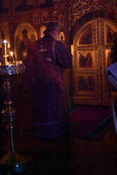 Владыке сослужил клирик храма Рождества Пресвятой Богородицы с. Семеновка протодиакон Михаил Козловский. Песнопения исполнял детско-юношеский хор «Благовест». Великое повечерие, кафизмы псалтыри на утрени и другие части богослужения читали певчие из хора.
