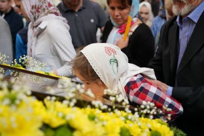 16 июня перед Литургией по традиции престольных праздников были отслужены водосвятный молебен и часы. После торжественной встречи митрополита Иоанна и облачения в центре храма началась Литургия Иоанна Златоустого.