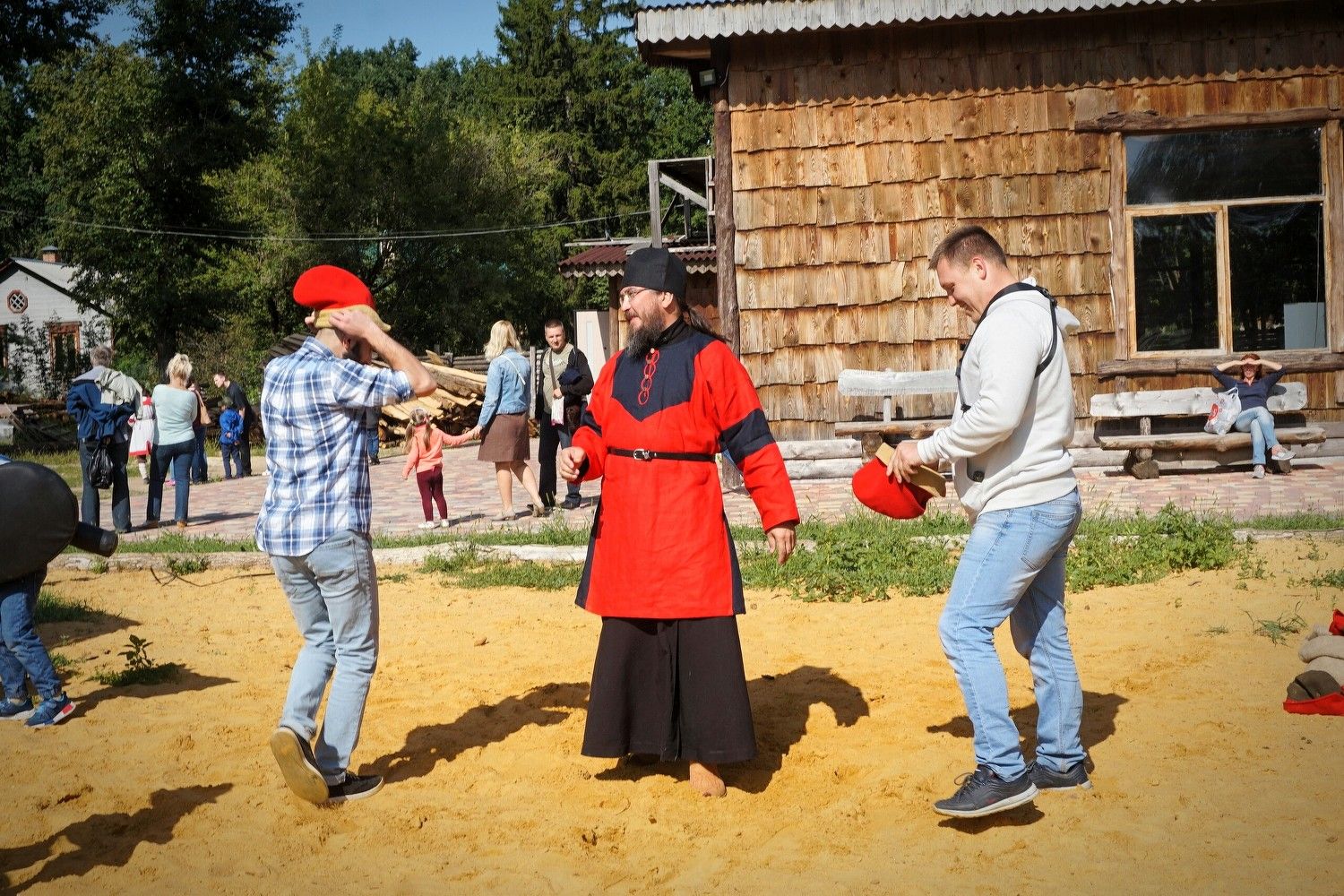 На праздник прибыли дружины Богатырских застав из Тулы и Тольятти. После молебна гостям заставы предложили показательное выступление со штурмом крепости с применением катапульты и праздничную программу для детей и родителей.
