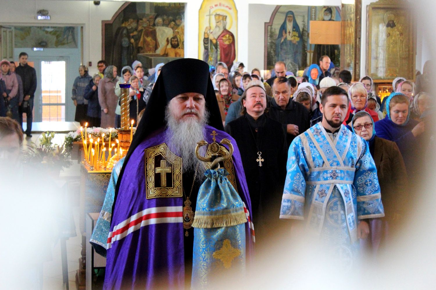 Накануне вечером, 20 сентября, епископ Феофан возглавил всенощное бдение в Никольском кафедральном соборе г. Волжска.