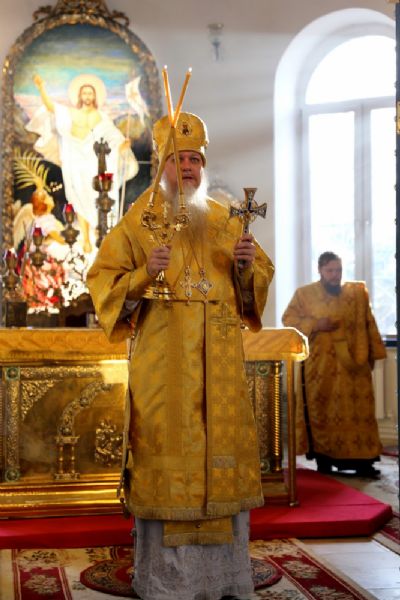 Епископ Феофан в воскресный день совершил Литургию в Никольском соборе г. Волжска 3895