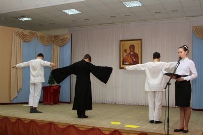 Как мы уже писали, спектакль «Епископ навеки» поставлен преподавателями и учащимися гимназии имени Сергия Радонежского и рассказывает о жизни и подвиге нашего Марийского святого – священномученика Леонида (Антощенко).