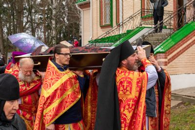 После Божественной литургии был совершен чин отпевания монашеского с пасхальным началом и пением пасхального канона вместо 17 кафизмы. Затем после крестного хода с гробом, тело было предано погребению за алтарем храма.