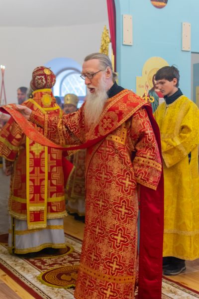 Владыке сослужили: секретарь Йошкар-Олинского епархиального управления иеромонах Серафим (Пасанаев), клирик храма протоиерей Андрей Малюта, благочинный Горномарийского церковного округа протоиерей Алексий Сущев и клирики епархии.