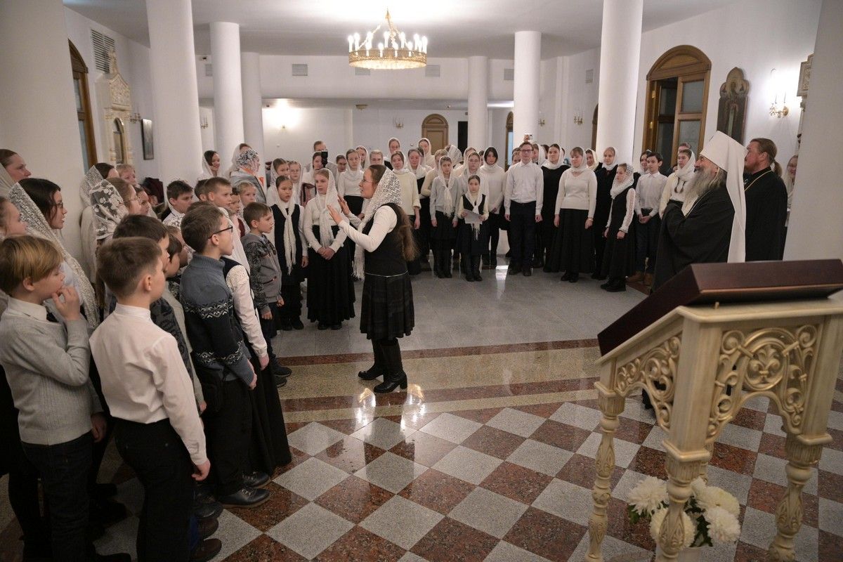 Песнопения исполняли младшая и старшая группы хора «Благовест» под руководством регентов Татьяны Черновой и Надежды Поздеевой. Для глухих и слабослышащих богослужебные песнопения и тексты переводил на жестовый язык сурдопереводчик Михаил Виногоров.