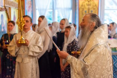 Владыке сослужили секретарь Йошкар-Олинского епархиального управления иеромонах Серафим (Пасанаев) и протодиакон Михаил Козловский. Песнопения исполнял хор под руководством регента Татьяны Черновой.