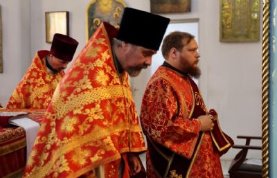 Правящему архиерею сослужило духовенство собора. Богослужебные песнопения исполнил Архиерейский хор под управлением Любови Михеевой и детско-юношеский хор (регент Мария Захарова).