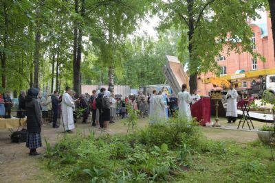 Вечером праздничного дня митрополит Иоанн возглавил молебен с акафистом Иисусу Сладчайшему на стройплощадке храма в честь иконы Божией матери «Всех скорбящих Радость» в микрорайоне Тарханово г. Йошкар-Олы. Владыке сослужили клирик Успенского храма иерей Алексий Михеев и протодиакон Михаил Козловский.