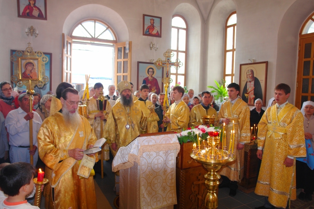 В минувшее воскресение, в день Всех святых, Владыка совершил здесь торжественное богослужение, участие в котором приняли многие верующие. Владыке сослужил клирик церкви Рождества Пресвятой Богородицы села Семеновка иерей Сергий Асланов. По завершении Литургии состоялся праздничный молебен с крестным ходом вокруг храма, во время которого Владыка щедро окропил всех святой водой.