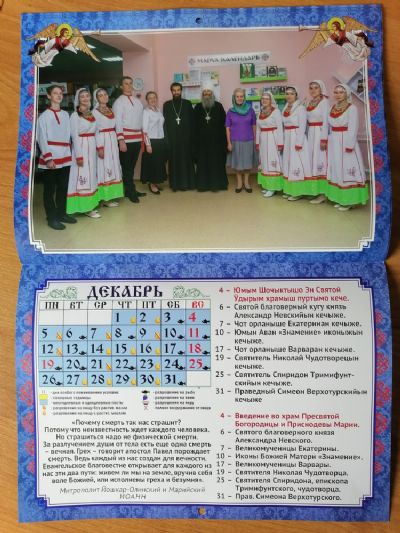 В преддверии Дня марийской письменности Марийская митрополия выпустила два православных настенных календаря на 2022 год. Это совместный проект Переводческой комиссии и Информационно-издательского отдела митрополии.