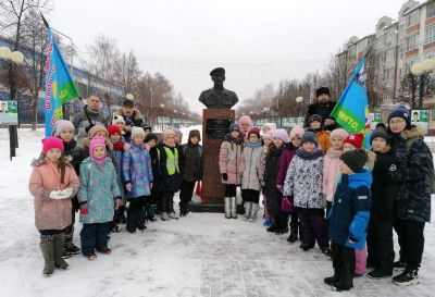 Учащиеся 3 класса урок мужества провели на аллее Памяти бойцов шестой десантной роты на бульваре Победы в Йошкар-Оле. Пройдя по аллее Памяти, где расположены стойки с фотографиями павших бойцов, дети почтили их память и возложили цветы к подножию бюста их погибшего командира, Героя России Марка Евтюхина, уроженца г. Йошкар-Олы.