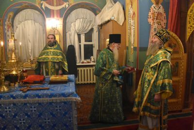 Владыке сослужили секретарь Йошкар-Олинского епархиального управления иеромонах Серафим (Пасанаев), клирик храма Рождества Христова г. Йошкар-Олы иерей Никита Смирнов и протодиакон Михаил Козловский. Песнопения исполняла вокальная группа хора «Благовест» под управлением регента Татьяны Черновой.