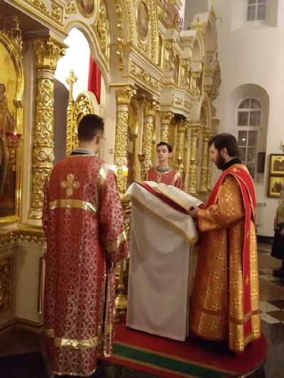 В храме Рождества Христова Божественную литургию совершил иерей Никита Смирнов в сослужении диаконов Артемия Бобоча и Димитрия Кудряшова. После Литургии настоятель храма иерей Александр Лоскутов совершил водосвятный молебен святому мученику Вонифатию, которому молятся об избавлении от недугов винопития и наркомании.