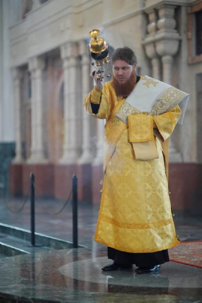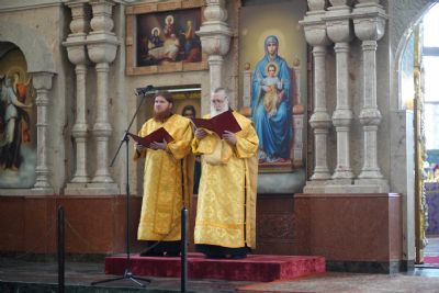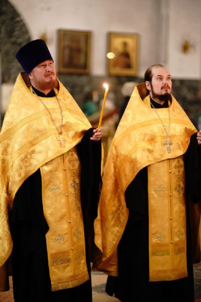 Его Высокопреосвященству сослужили секретарь Йошкар-Олинского епархиального управления иеромонах Серафим (Пасанаев), ключарь кафедрального собора протоиерей Сергий Поглазов, клирики собора, клирик Вознесенского собора иерей Игорь Коваль и протодиакон Михаил Козловский. Песнопения исполняли старший и младший состав детско-юношеского хора «Благовест» под руководством регентов Татьяны Черновой и Надежды Поздеевой.