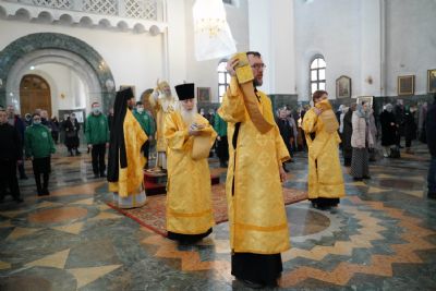 13 марта, в Неделю Торжества Православия, митрополит Йошкар-Олинский и Марийский Иоанн совершил Божественную Литургию святителя Василия Великого в Благовещенском кафедральном соборе г. Йошкар-Олы. Накануне владыка возглавил здесь же всенощное бдение.