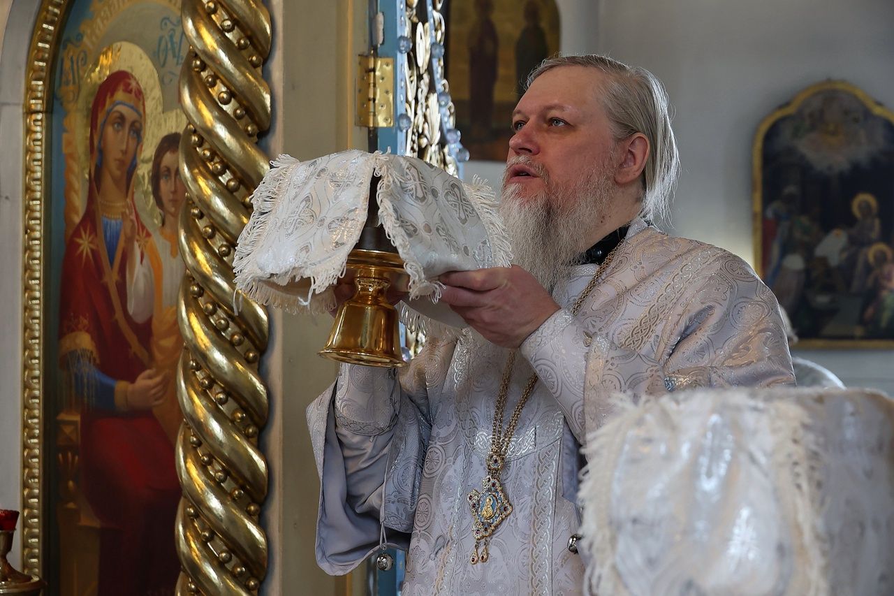 Его Преосвященству сослужили клирики собора, песнопения исполнял архиерейский хор.