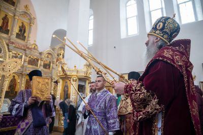 Владыке сослужили секретарь Йошкар-Олинского епархиального управления иеромонах Серафим (Пасанаев), настоятель храма иерей Александр Лоскутов, клирики храма и протодиакон Михаил Козловский. Песнопения исполнял хор храма под управлением регента Наталии Поповой.