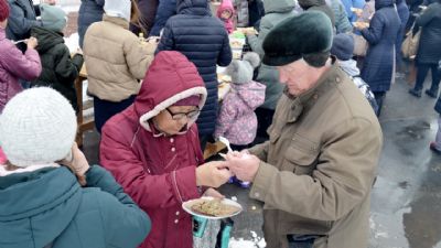 Несмотря на прохладную и ветреную погоду желающих угоститься было немало. Для ребятишек была возможность в этот день прокатиться на ослике Жади, что доставило детям много радости.