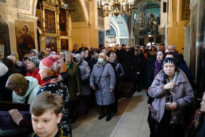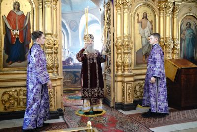 Архипастырю сослужили секретарь епархиального управления иеромонах Серафим (Пасанаев), ключарь храма протоиерей Михаил Ильин, протодиакон Михаил Козловский и клирики храма. Песнопения исполнял хор храма.