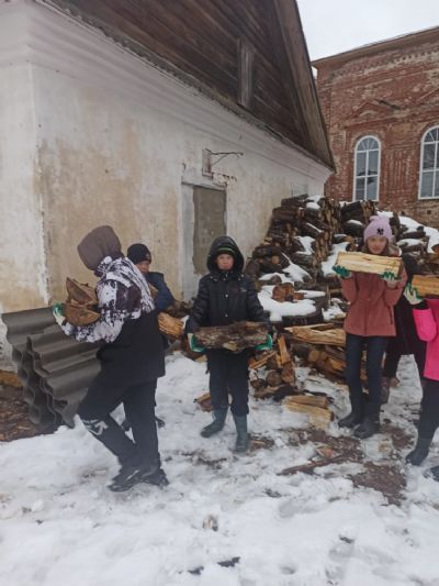 После уроков ребята отправились на территорию восстанавливаемого в селе Илеть Параньгинского района храма Покрова Пресвятой Богородицы. Здесь они помогли перенести расколотые дрова в подсобное помещение храма и сложить их в поленницы.