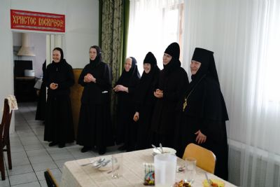 В завершение митрополит Иоанн поздравил игумению и насельниц обители с праздником Пасхи и вручил сладкие подарки.