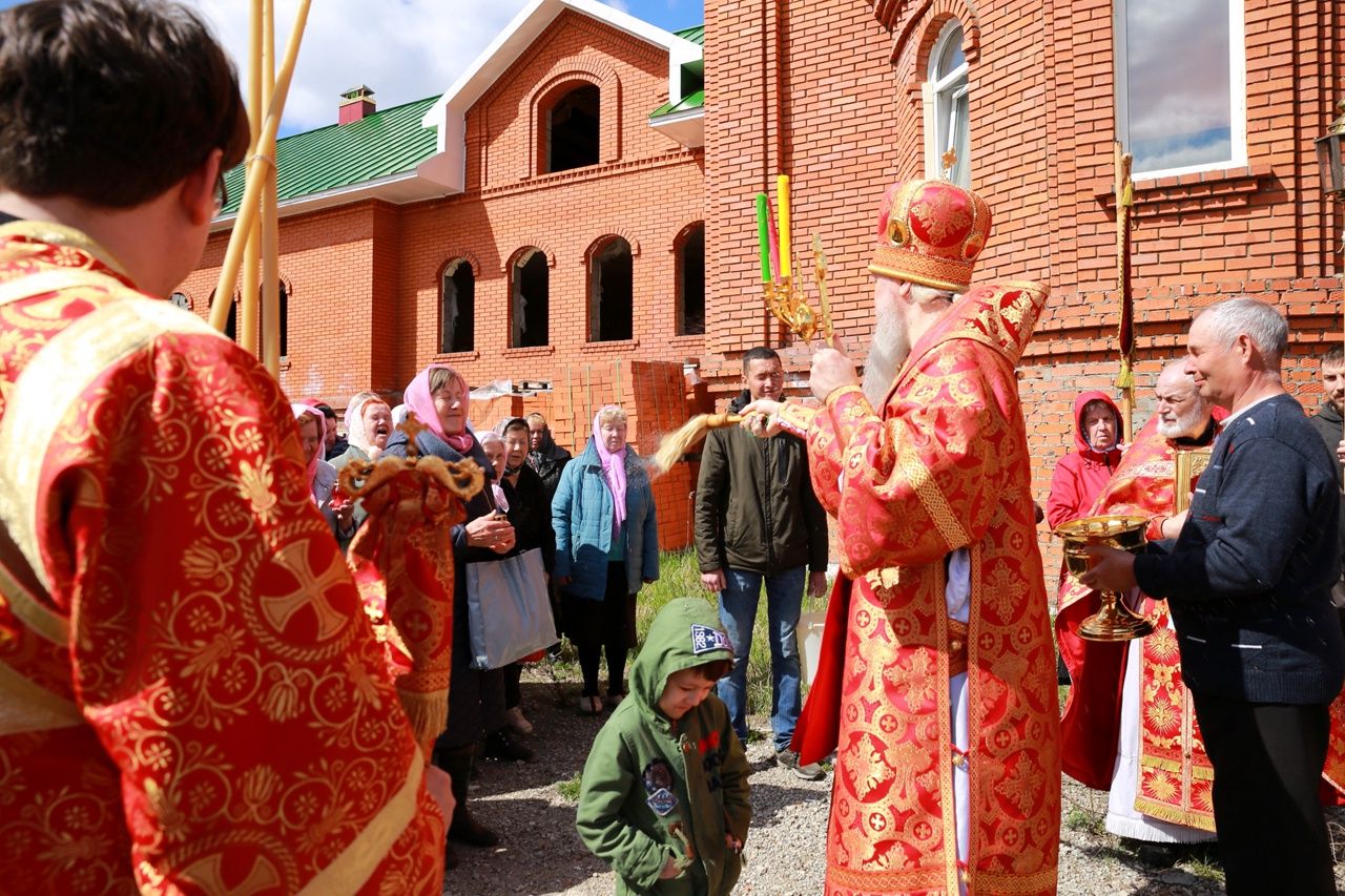По окончании Литургии епископ Феофан совершил чин малого освящения воды, после чего состоялся традиционный пасхальный крестный ход.