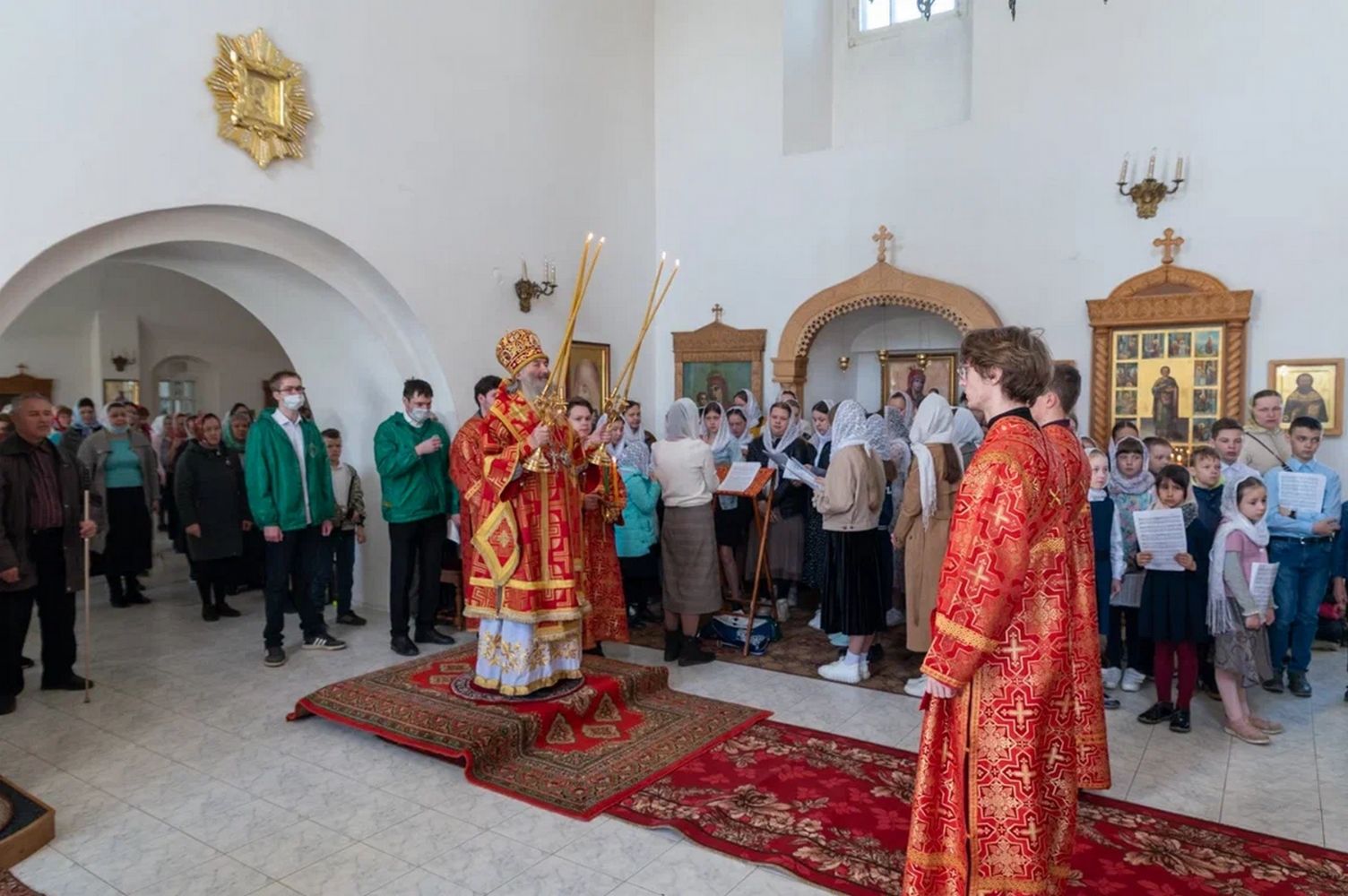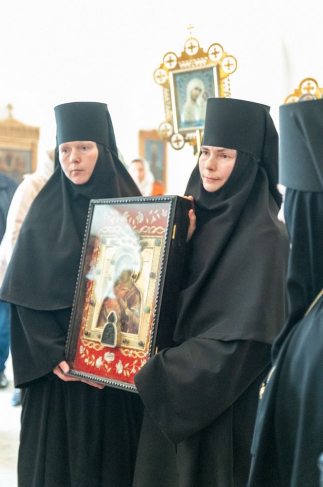 Владыке сослужили секретарь Йошкар-Олинского епархиального управления иеромонах Серафим (Пасанаев), клирик монастыря иерей Михаил Лежнин и протодиакон Михаил Козловский. Песнопения исполняли старший и младший составы хора «Благовест» под управлением регентов Татьяны Черновой и Надежды Поздеевой.