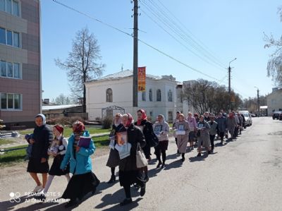 Молитвенное шествие с иконами и хоругвями было посвящено празднуемому в этот день святителю Стефану Великопермскому и 77-летию Победы в Великой Отечественной войне.