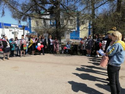 Далее на площадке около Михайло-Архангельского храма активисты православного клуба «Возрождение» провели акцию «Песни военных лет». Песни под баян с удовольствием пели молодежь, прихожане храма и жители п. Сернур.