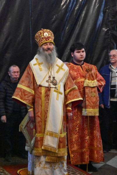 Владыке сослужили секретарь Йошкар-Олинского епархиального управления иеромонах Серафим (Пасанаев), настоятель собора иерей Алексий Кирюшкин, клирики собора и протодиакон Михаил Козловский. Песнопения исполнял хор храма под управлением регента Алисы Вылегжаниной.