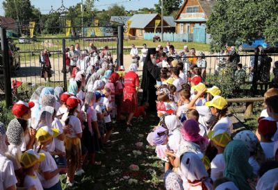 На богослужении молились дети из православного лагеря «Золотые купола».