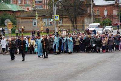 Утром 16 сентября в Воскресенском соборе г. Йошкар-Олы, где накануне вечером встретили Мироносицкий крестный ход, была совершена Божественная литургия, возглавил которую настоятель собора иерей Алексий Кирюшкин.