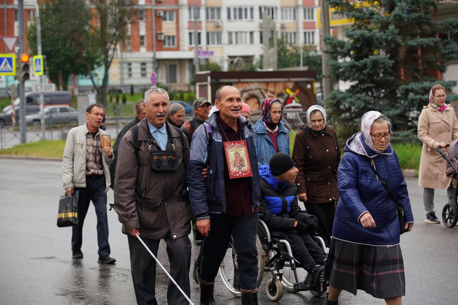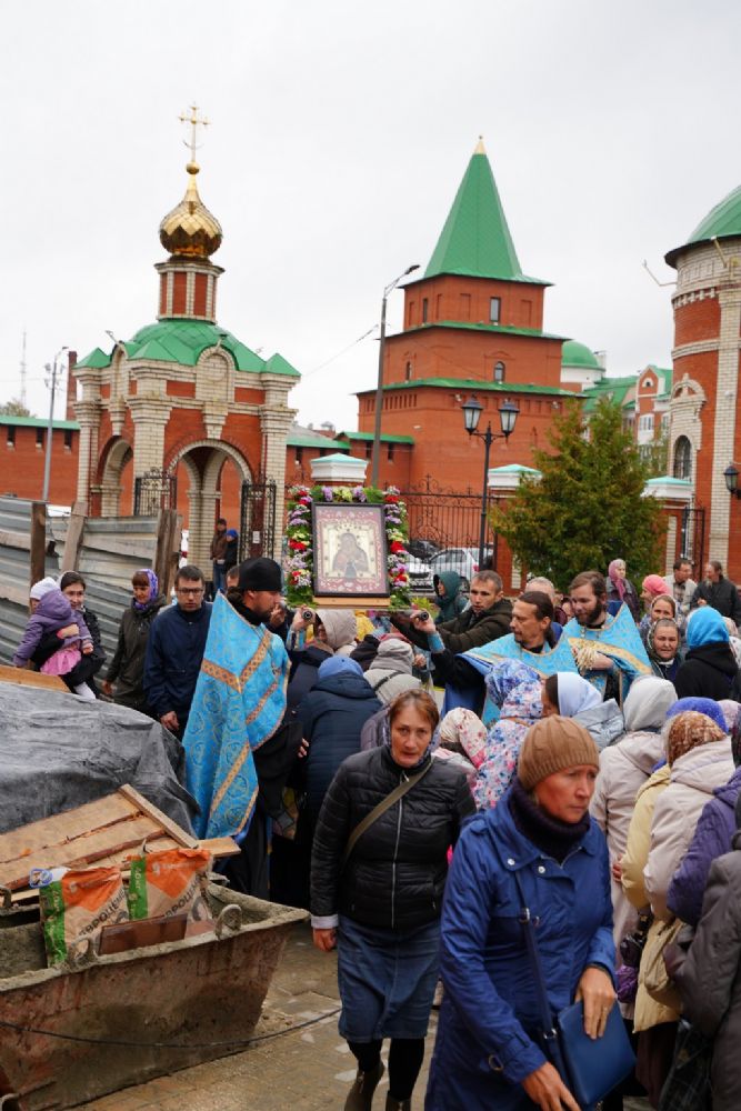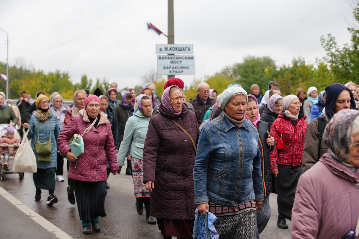 После Литургии был совершен крестный ход вокруг собора с чтением Евангелия и кроплением святой водой. И затем Мироносицкая икона Божией Матери под звон колоколов в сопровождении священства и прихожан отправилась в дальнейший путь – за пределы Йошкар-Олы, в село Кузнецово Медведевского района.