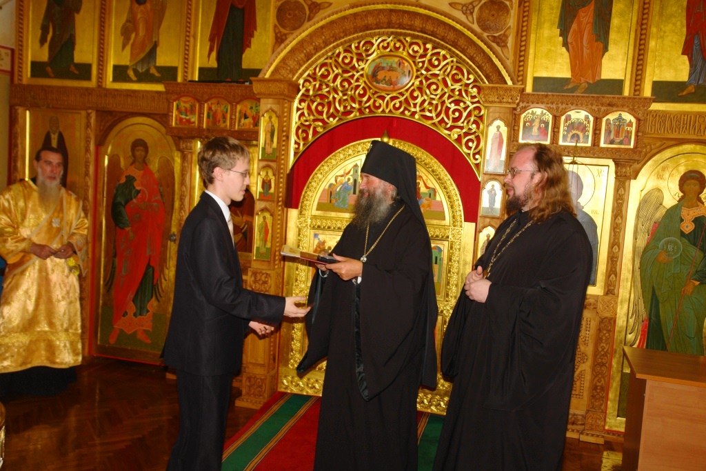 В конце молебна архиепископ Иоанн обратился к присутствовавшим с проповедью. Владыка процитировал апостола Иакова, который говорит, что кто научился в скорби радоваться, приобретет терпение, кто приобрел терпение познает что такое вера православная… Владыка, обращаясь к выпускникам, пожелал, чтобы печаль и уныние не касалось их сердец.