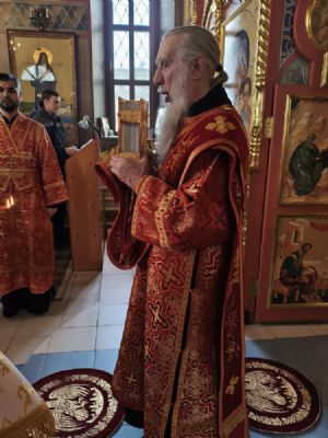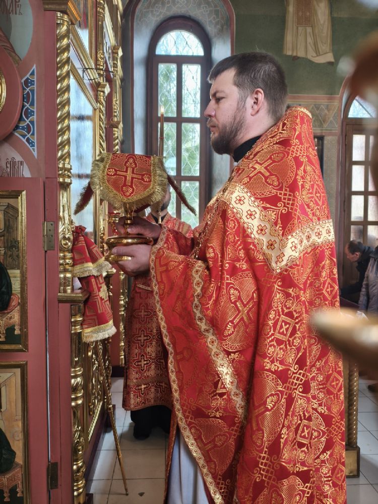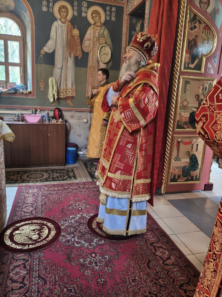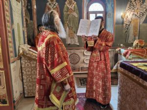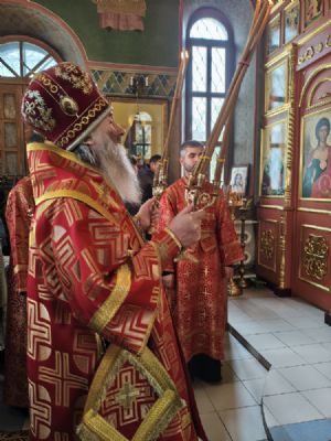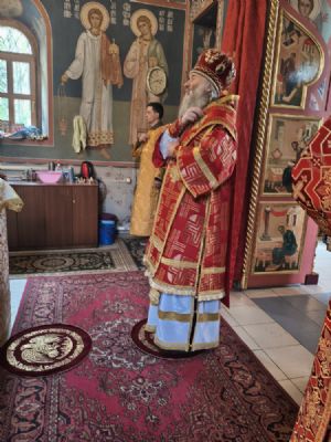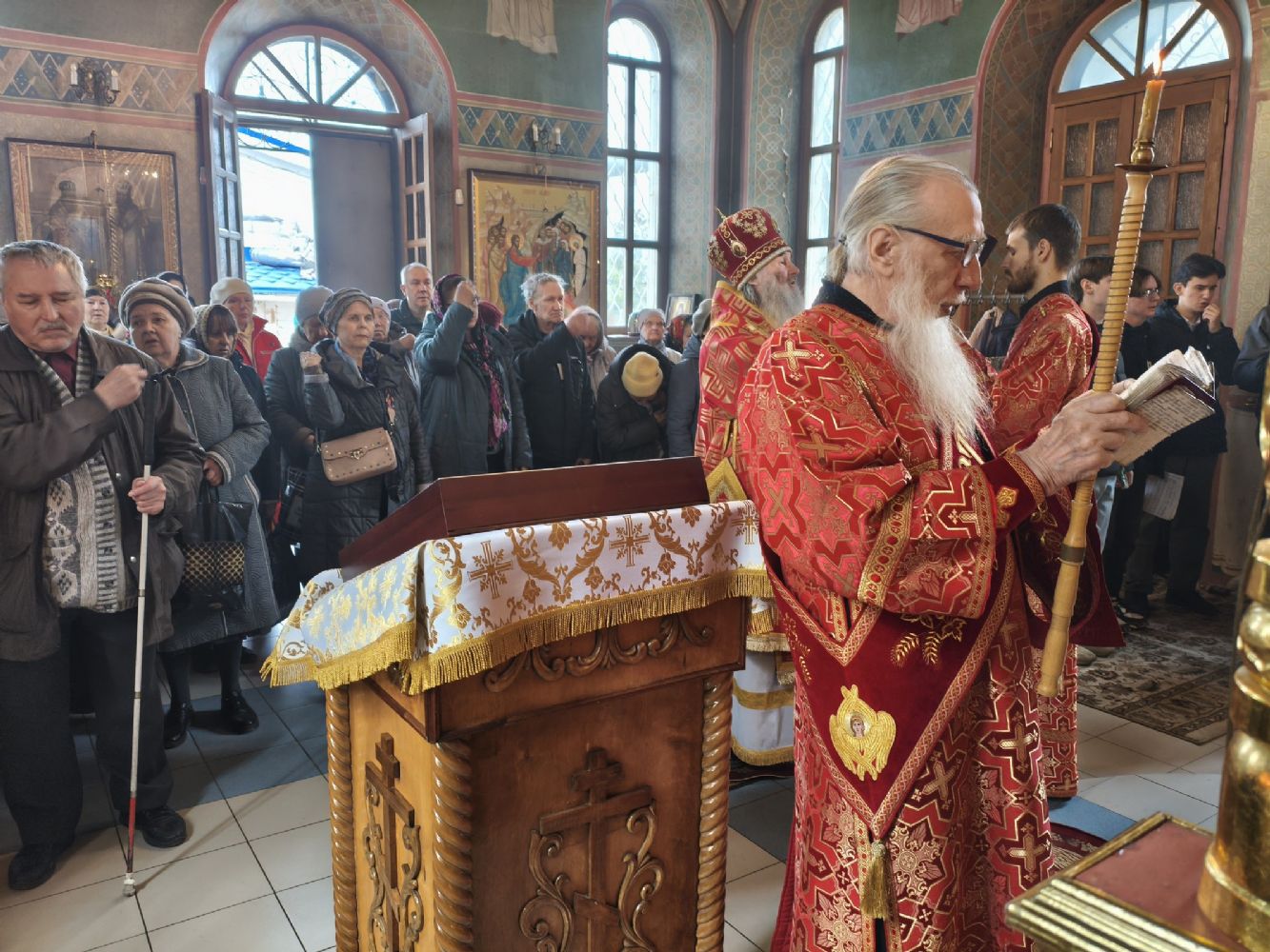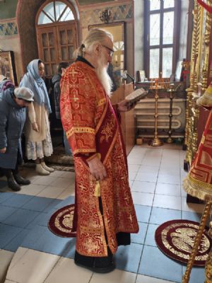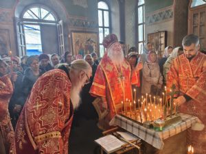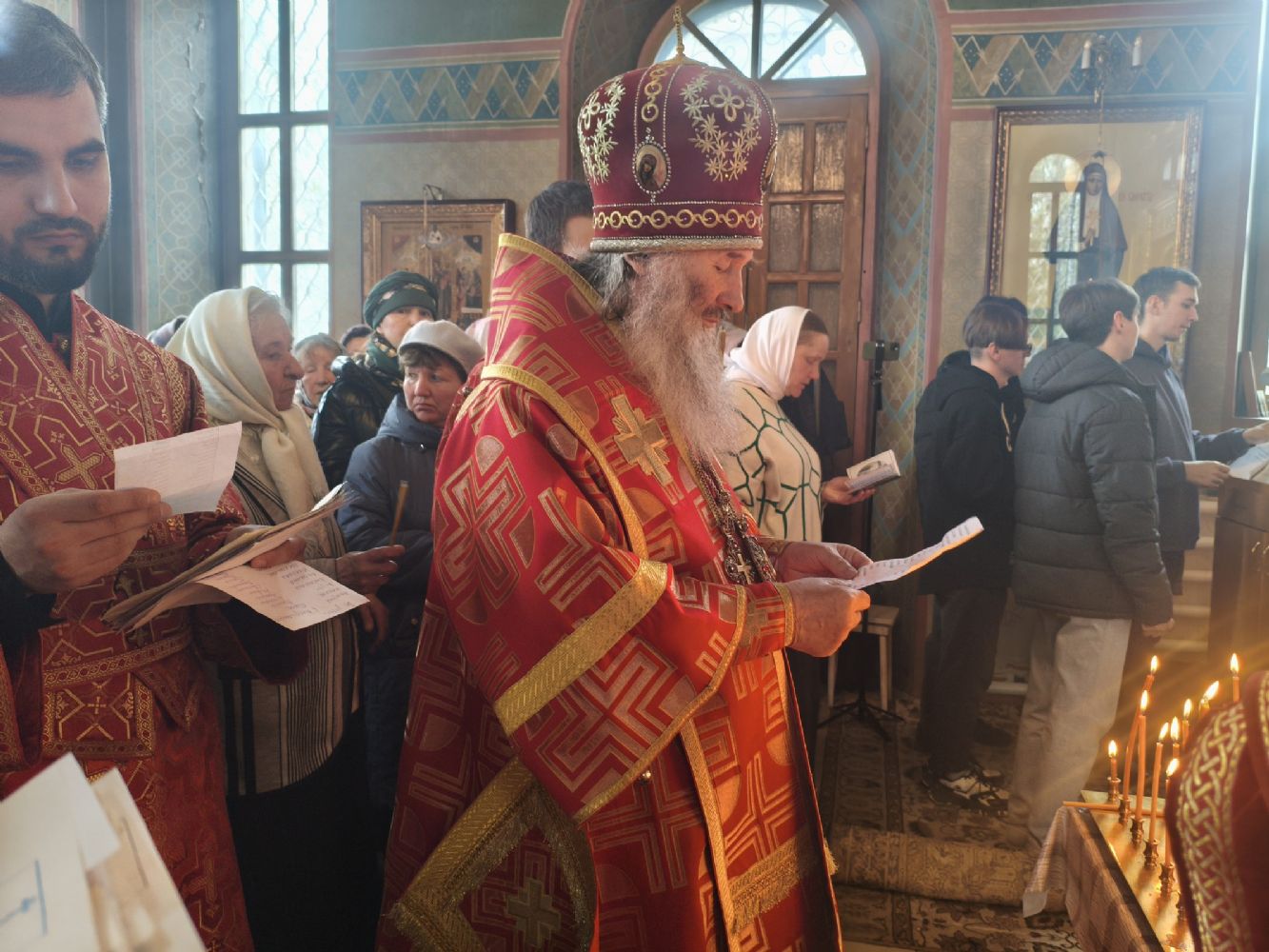 Владыке сослужили клирики храма Рождества Пресвятой Богородицы с. Семеновка иерей Павел Дурандин и протодиакон Михаил Козловский. Песнопения исполнял мужской состав хора «Благовест» под управлением Сергея Мамадалиева.