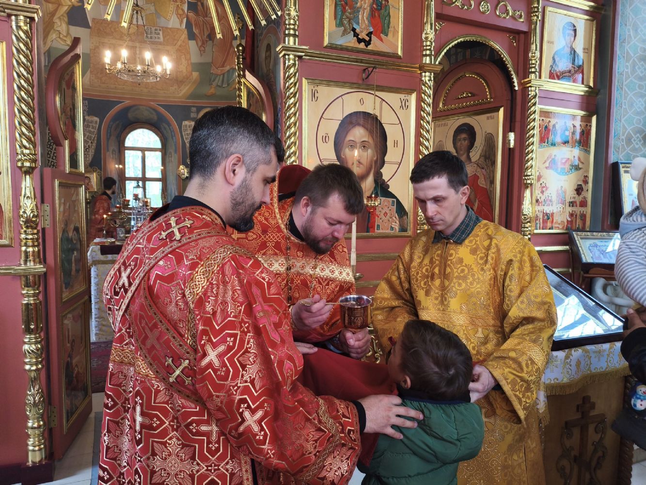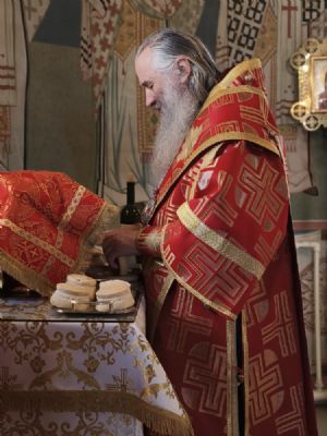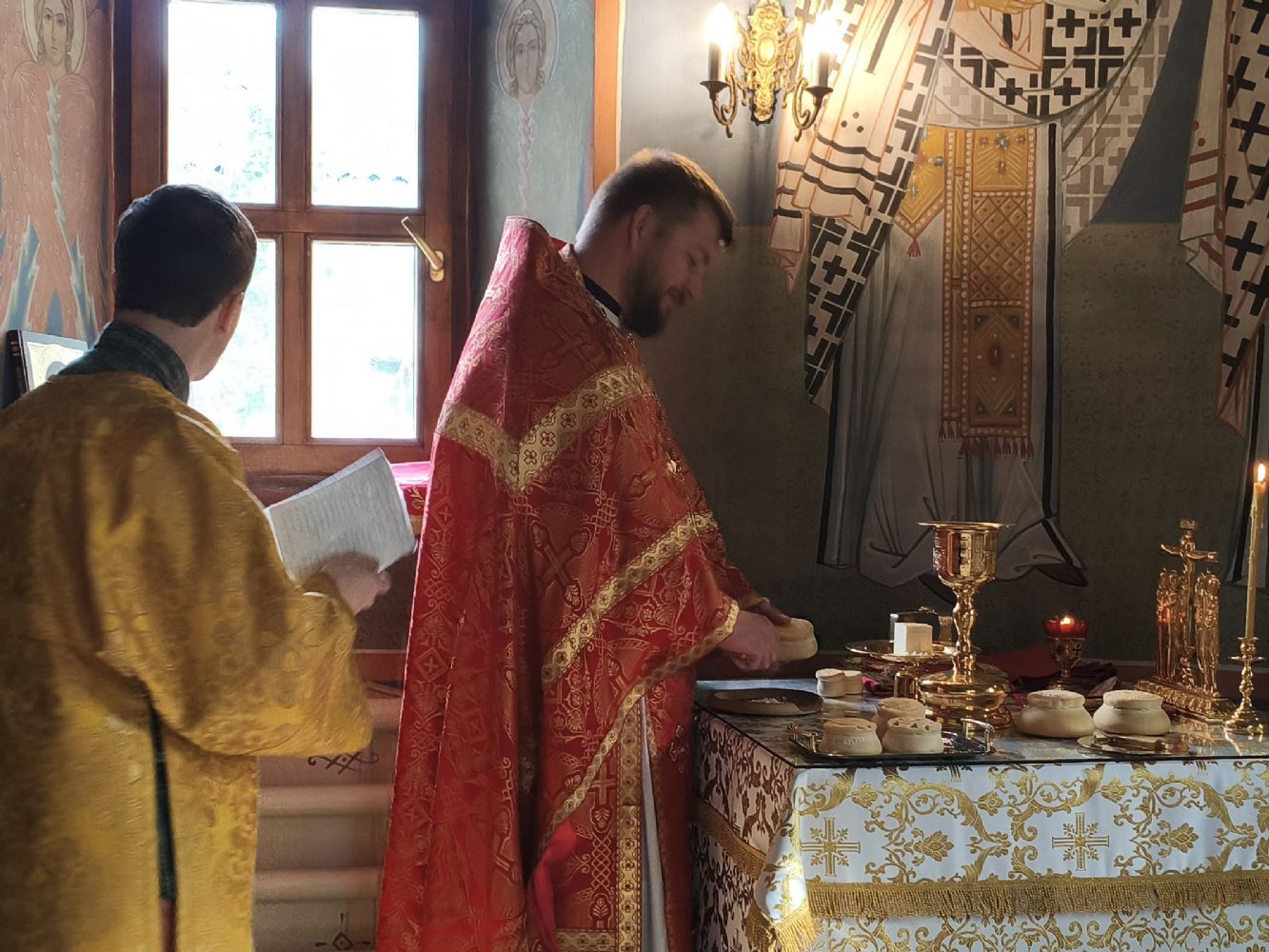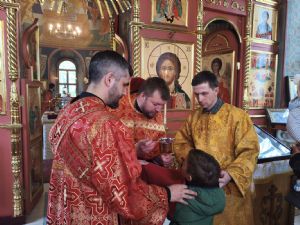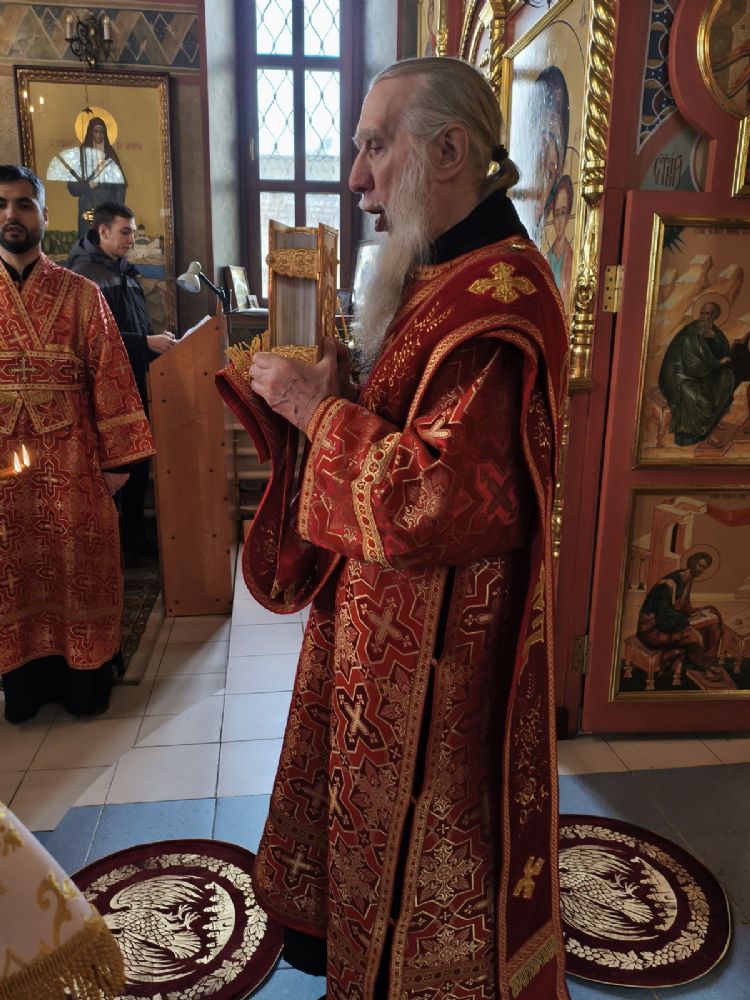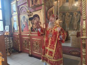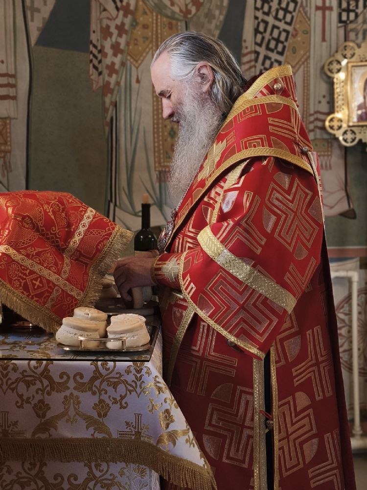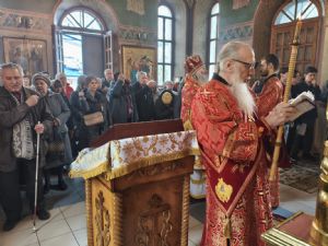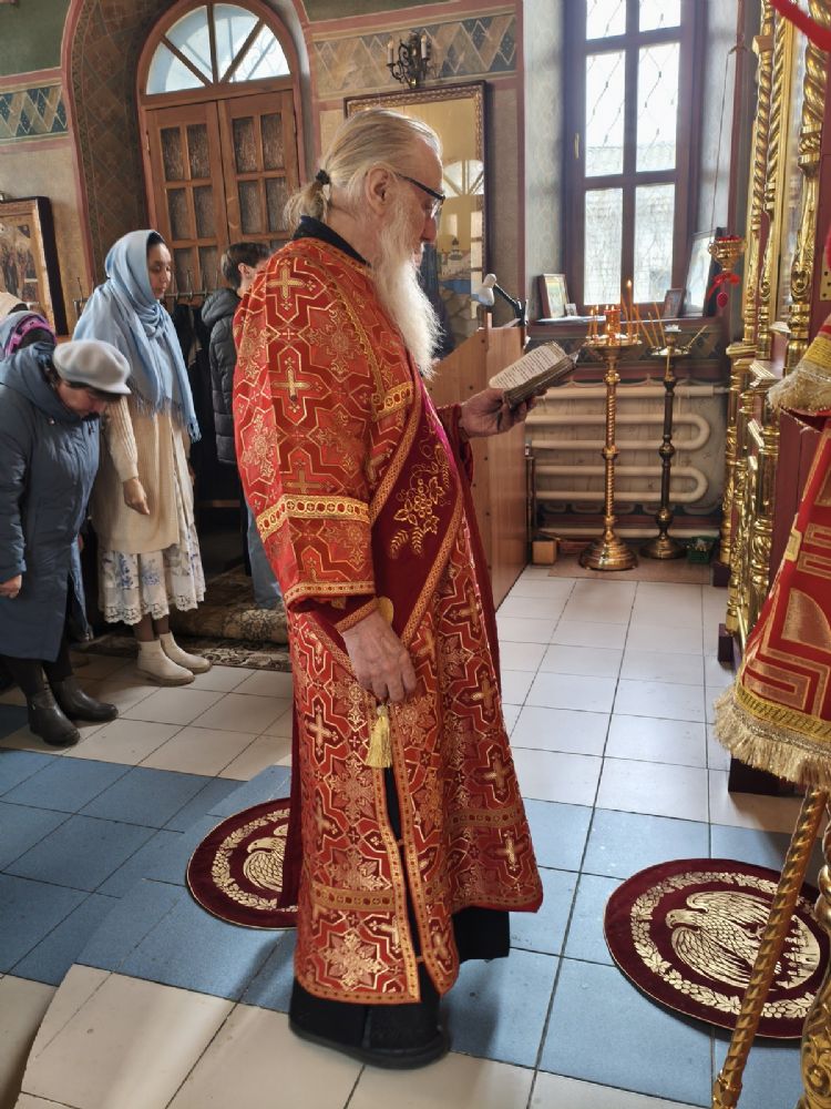 Владыке сослужили клирики храма Рождества Пресвятой Богородицы с. Семеновка иерей Павел Дурандин и протодиакон Михаил Козловский. Песнопения исполнял мужской состав хора «Благовест» под управлением Сергея Мамадалиева.