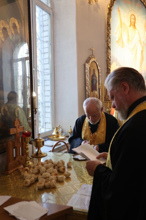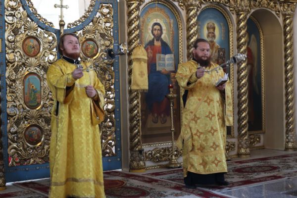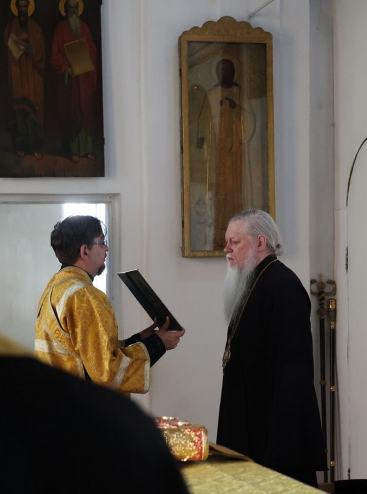 Его Преосвященству сослужило духовенство Никольского собора. Песнопения исполнял архиерейский хор под управлением Любови Михеевой.