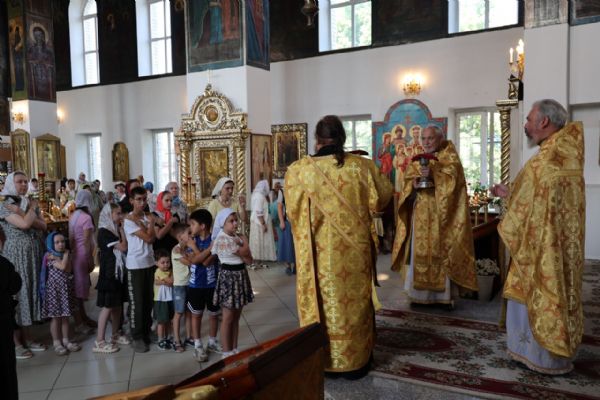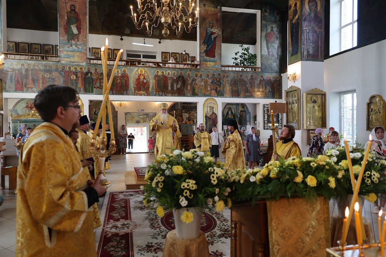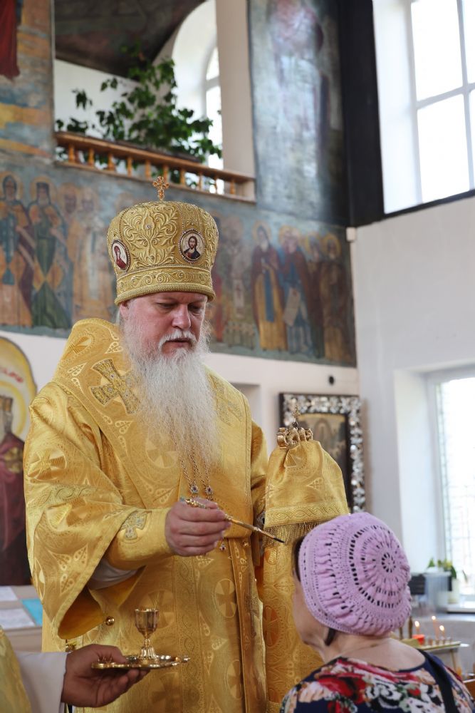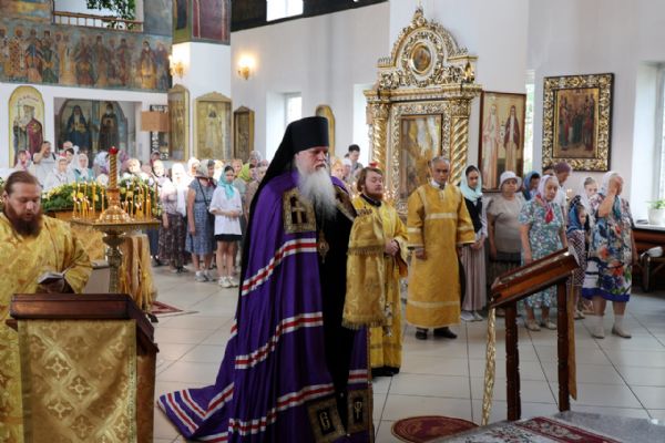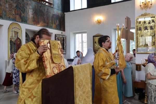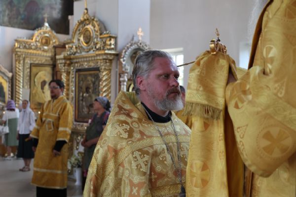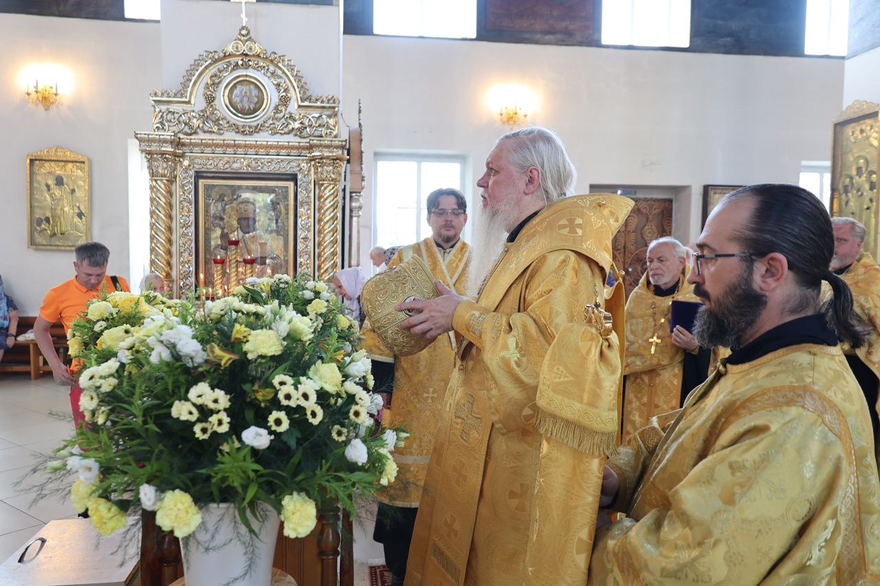 После Литургии было совершено славление перед иконой праздника, затем архипастырь обратился к верующим с проповедью, рассказав о трудах на ниве Христовой апостолов Петра и Павла.