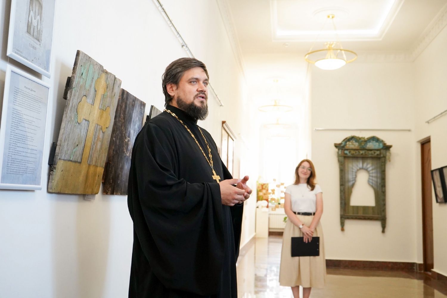 С приветственным словом к посетителям, пришедшим на открытие выставки, обратился руководитель молодежного отдела Йошкар-Олинской епархии иерей Никита Иванов.