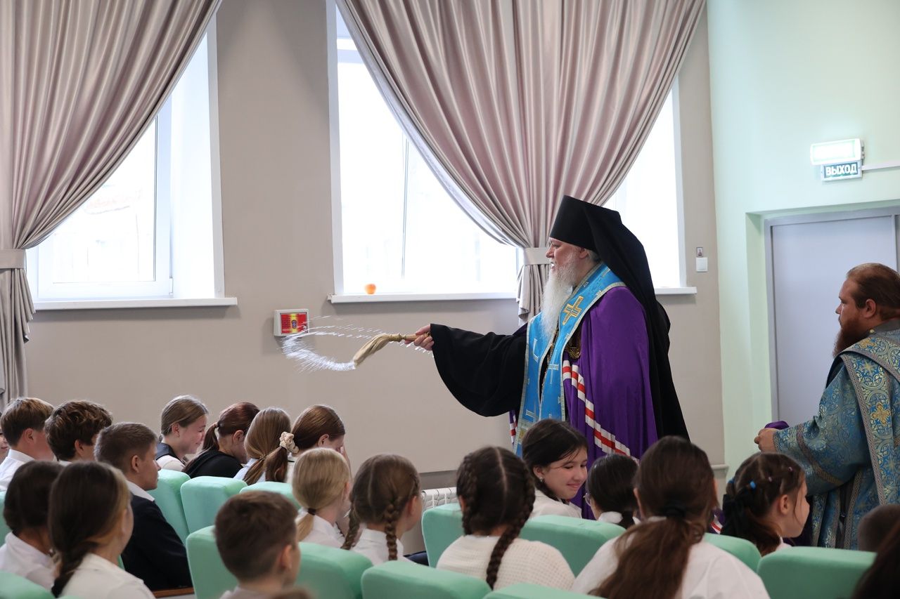3 сентября епископ Волжский и Сернурский Феофан посетил среднюю общеобразовательную школу №7 г. Волжска, где совершил молебен на начало учебного года.