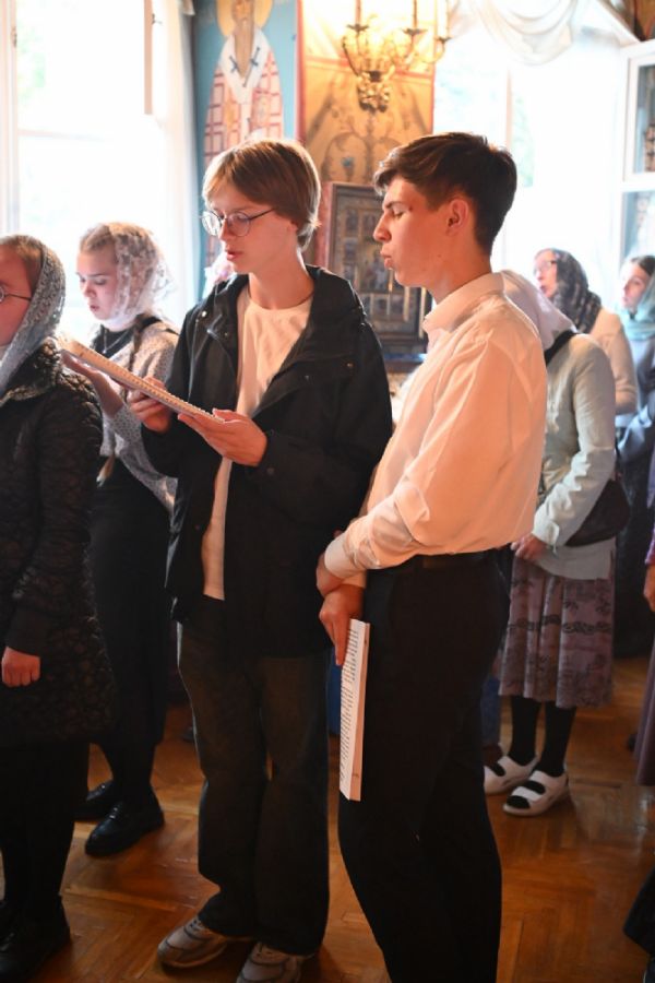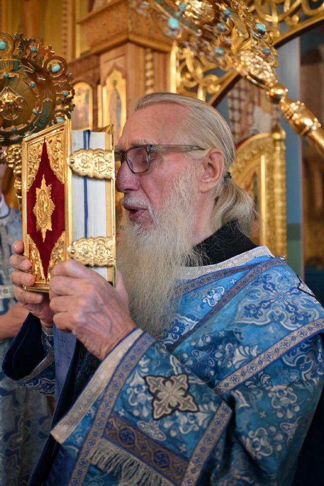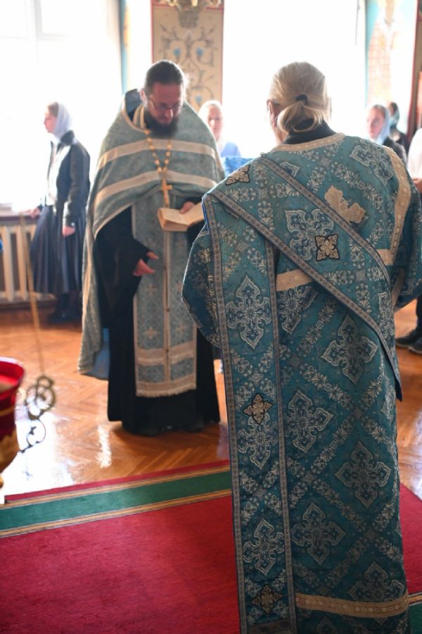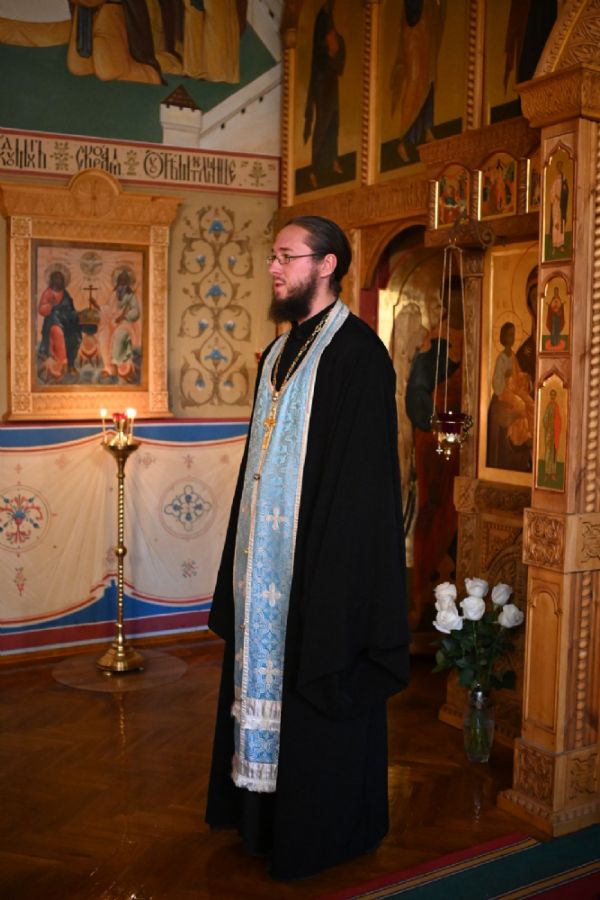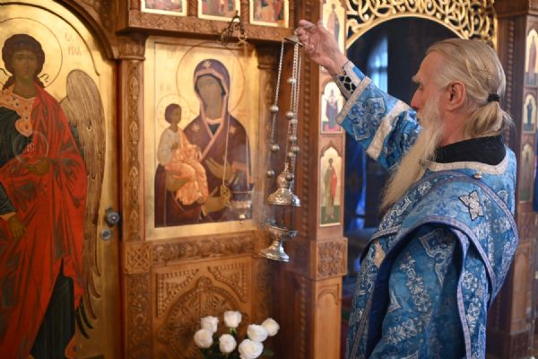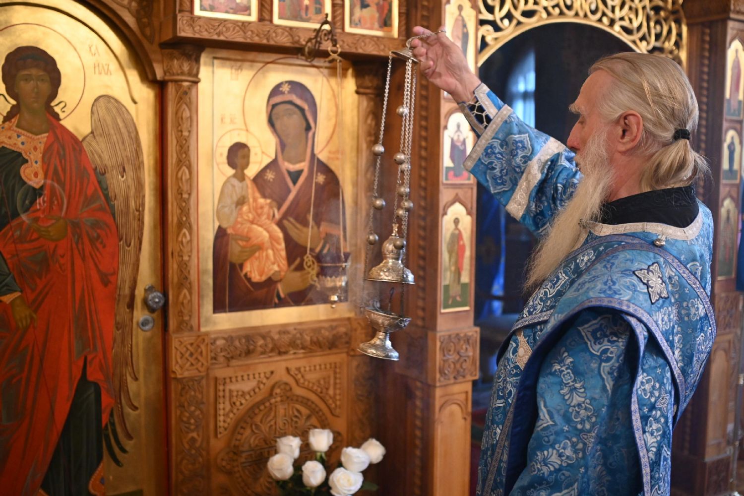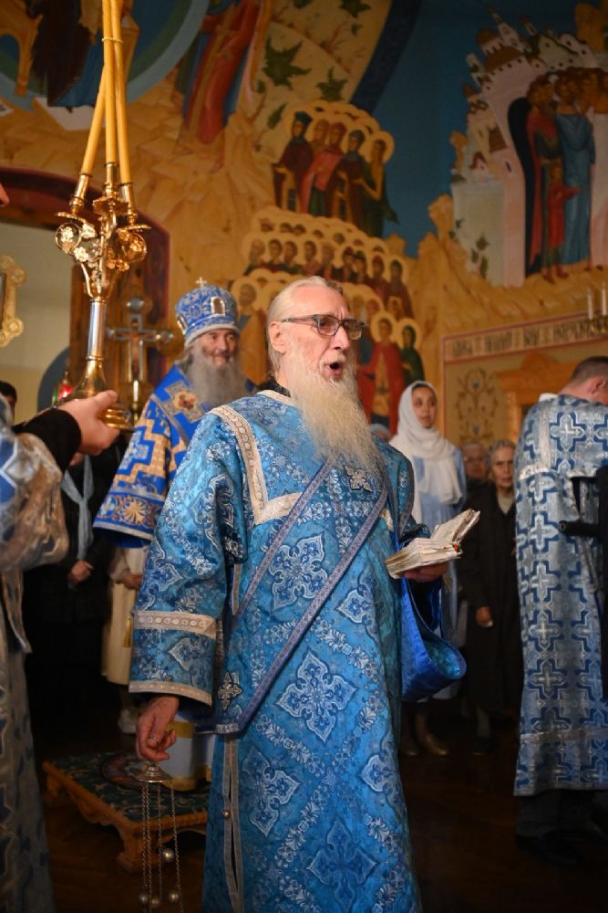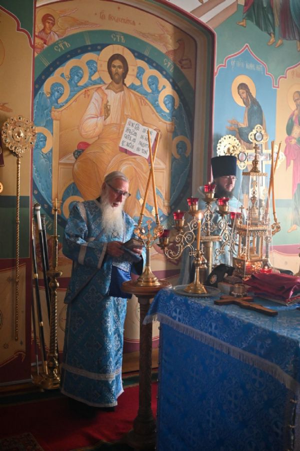 На вечерне читались ветхозаветные паримии из книг Бытия, Пророка Иезекииля и Притчей Соломоновых, прообразующие Пресвятую Богородицу.
