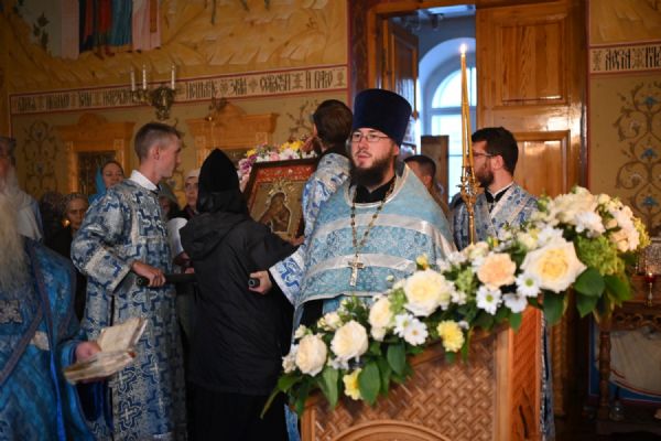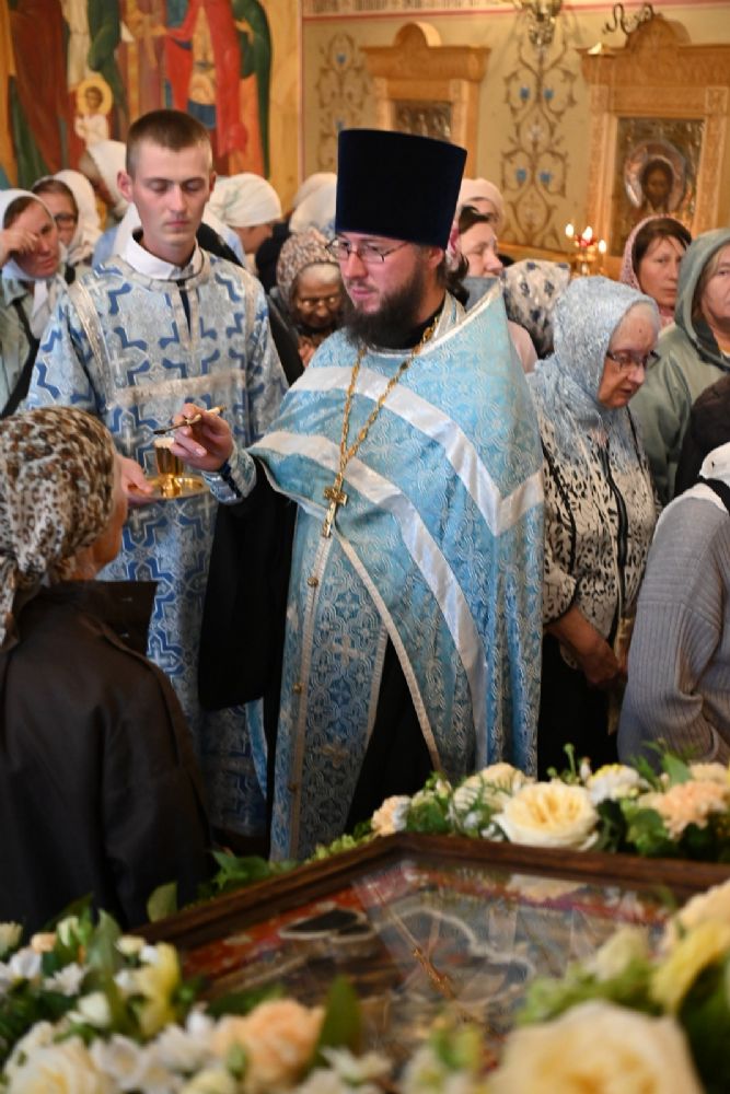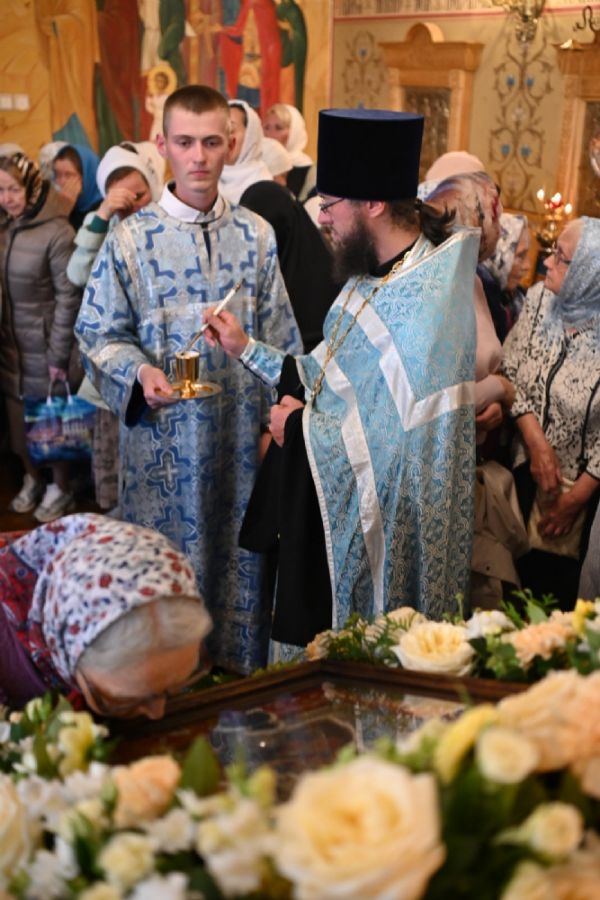 На утрене после чтения Евангелия верующие помазывались освященным елеем. Впервые звучал канон Пресвятой Богородице в честь Ее иконы «Мироносицкая» или «Царевококшайская», утвержденный для богослужебного использования на заседании Священного Синода Русской Православной Церкви в июле нынешнего года.