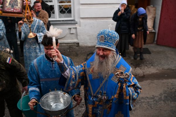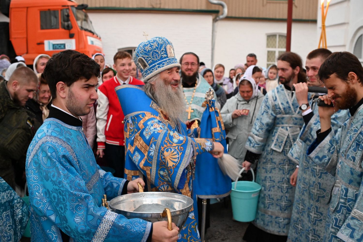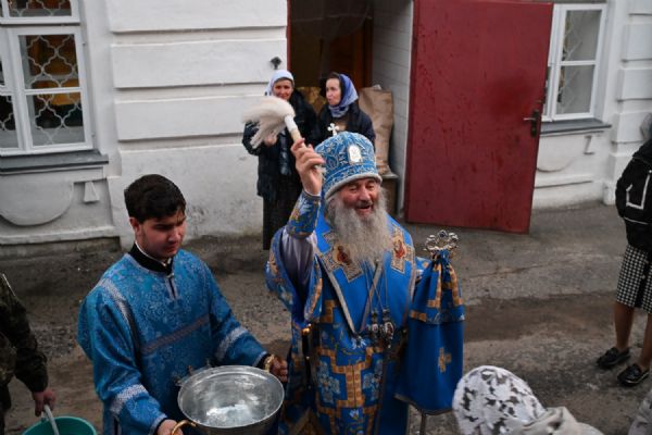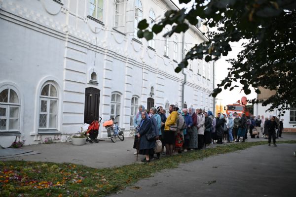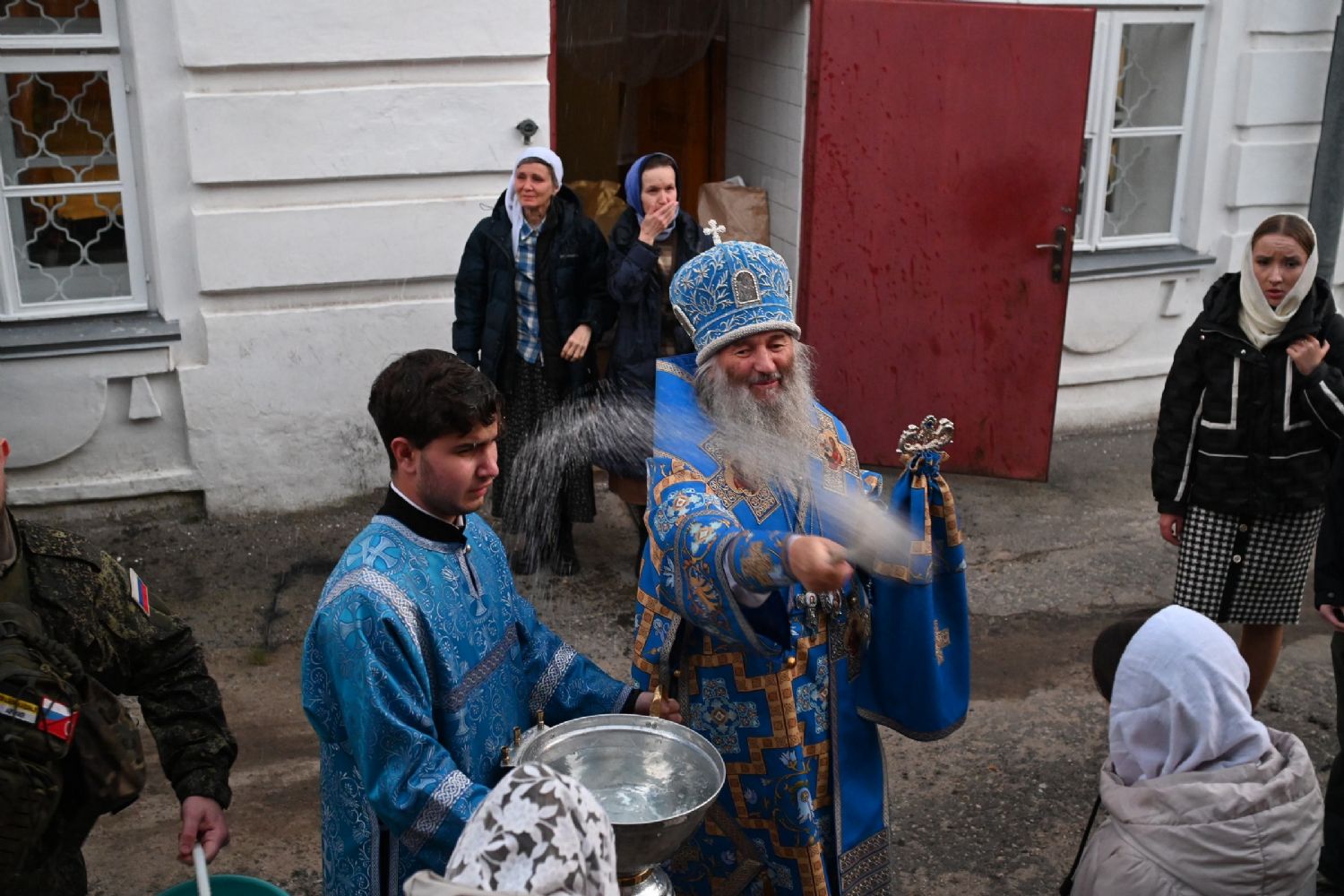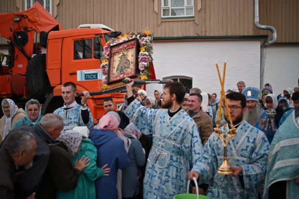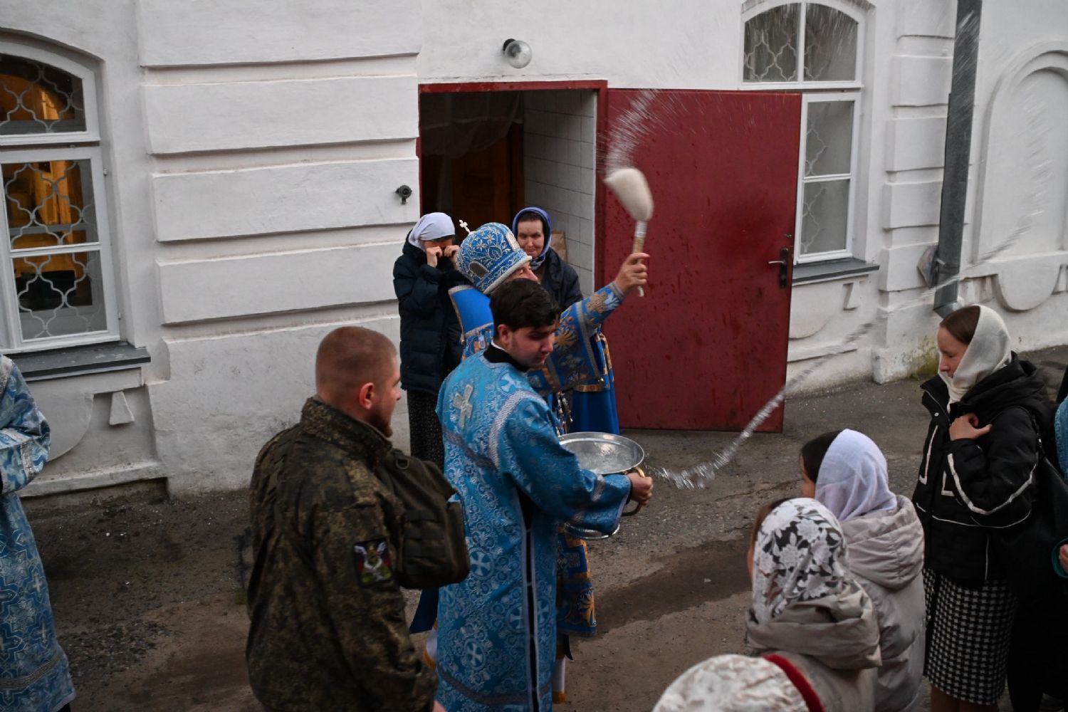 По окончании всенощного бдения крестный ход с Мироносицкой иконой Богородицы продолжился и, обойдя вокруг домового храма, отправился к Вознесенскому собору, где святыню встретили духовенство и прихожане собора.