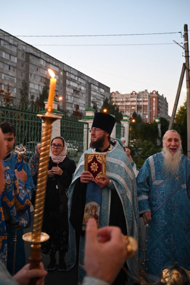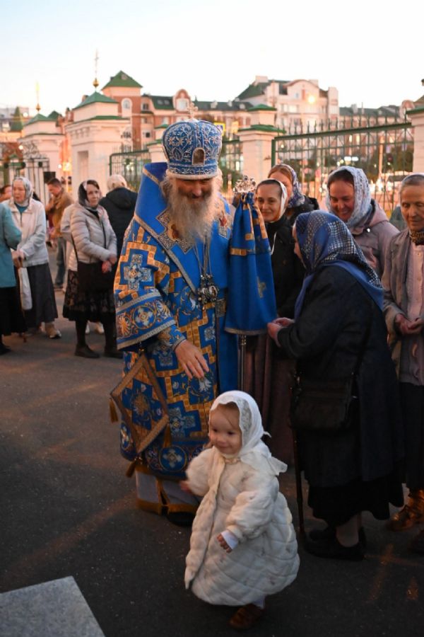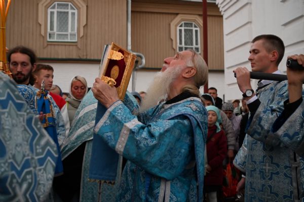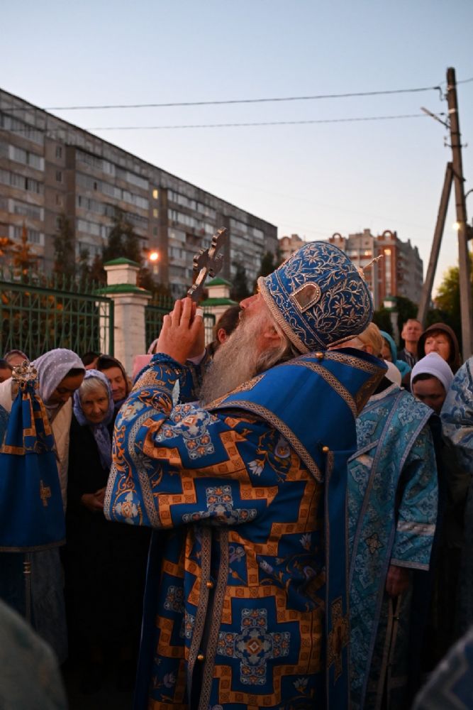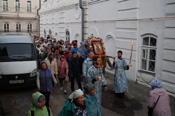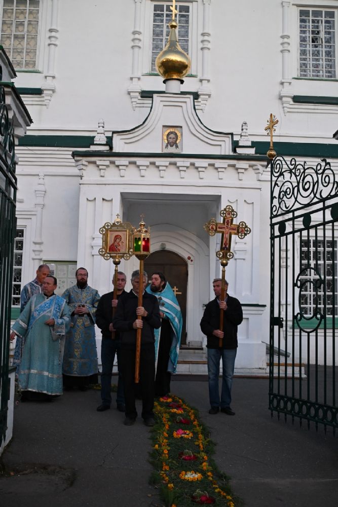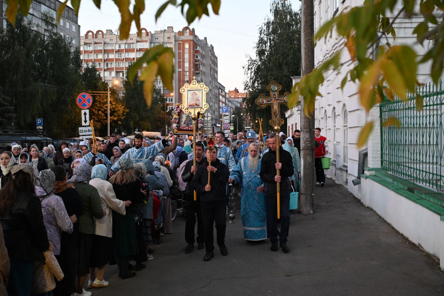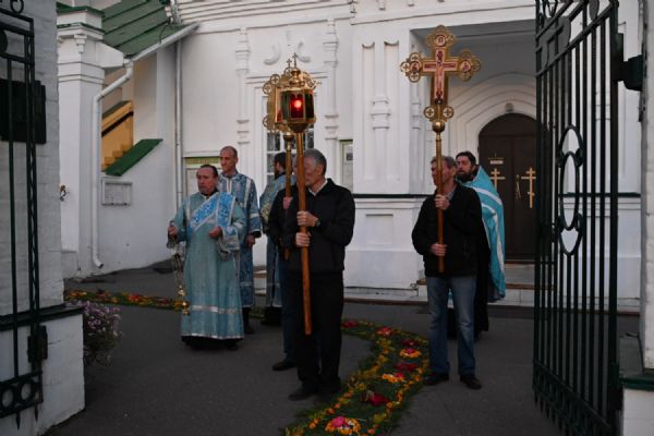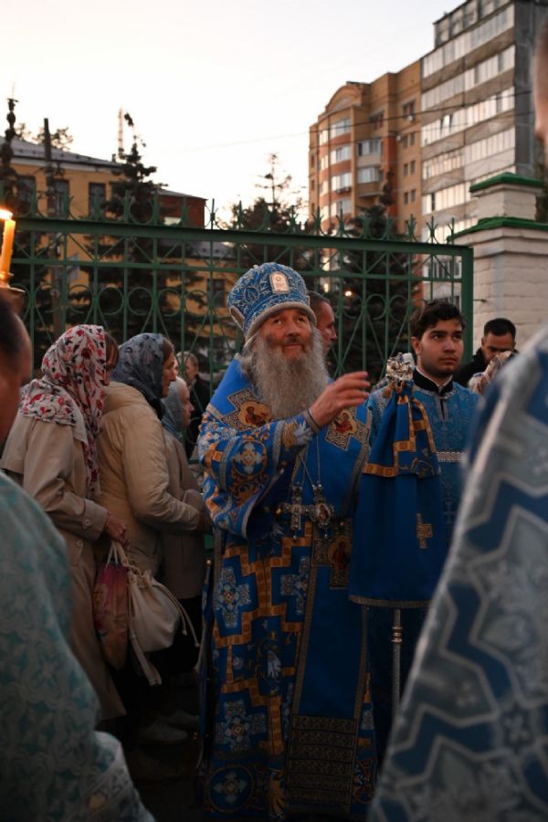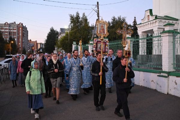 12 сентября вечером митрополит Йошкар-Олинский и Марийский Иоанн возглавил всенощное бдение в домовом храме епархиального управления, после чего возглавил крестный ход с Мироносицкой иконой Пресвятой Богородицы в Вознесенский собор.
